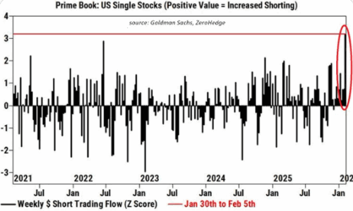 "US hedge funds shorted US single stocks at the FASTEST pace last week since at least the 2020 CRISIS."